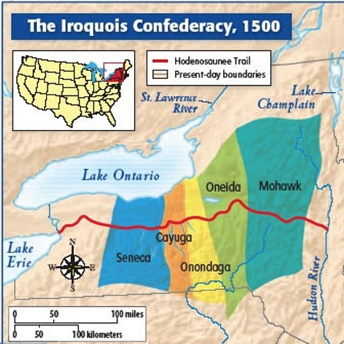Prior to 1600 the Iroquois lived in New York State, and largely the Finger Lakes region south of Lake Ontario. They traded beaver pelts with the Dutch for guns.